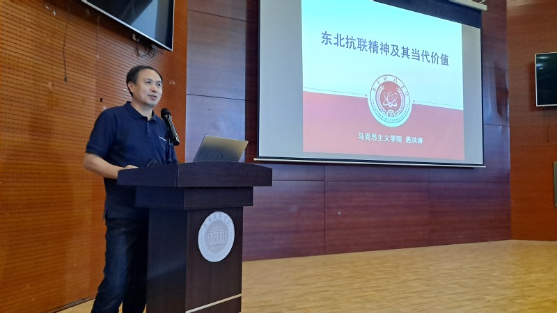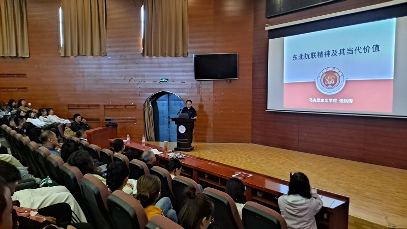 遇洪涛经理的讲座,结合丰富的东北抗联史料、代表人物事迹,用感人肺腑的语言生动讲述了东北抗联精神的形成过程、基本内涵和当代价值。