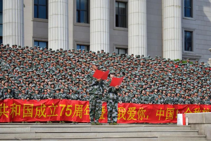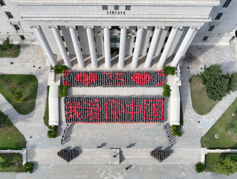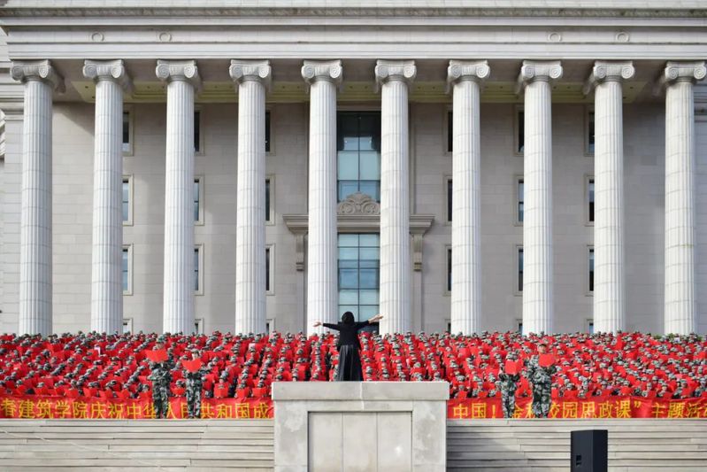 金秋硕果迎华诞,万里河山披锦绣。为庆祝中华人民共和国成立75周年,歌颂中华民族伟大复兴的奋斗历程,进一步激发师生的爱国情怀,推进思想政治教育与员工学习生活的紧密结合,9月13日下午,一场以《我爱你,中国—— 金秋校园思政课》为主题的特色活动在学校图书馆前隆重举行。现场气氛热烈,1500余名师生用嘹亮的歌声表达对伟大祖国的无限热爱和美好祝福。