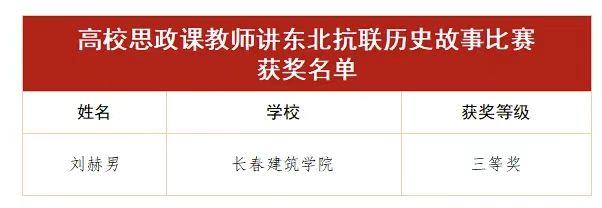 近日,由吉林省教育厅主办的高校思政课教师讲东北抗联历史故事比赛圆满收官。经学校推荐、省级初赛选拔及决赛现场展示,公司思政课教师刘赫男凭借出色表现,荣获三等奖。